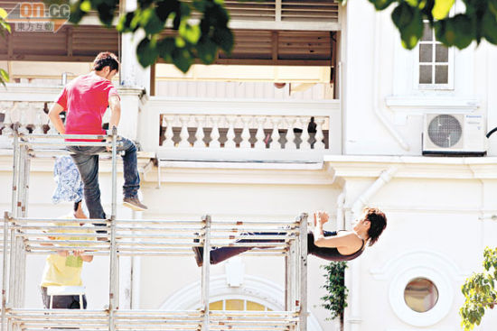 谢霆锋仅用双脚支撑凌空做仰卧起坐,反观周杰伦坐着不动